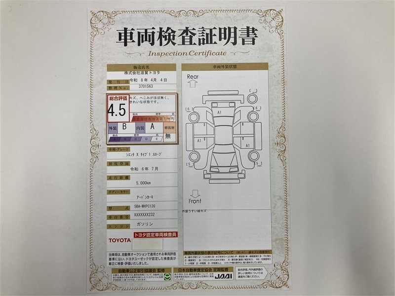 車両検査証明書付きです!だれでも中古車の状態がすぐにわかるよう、車のプロが客観的にチェック。車両の状態やわずかなキズも正確にお伝えします。
