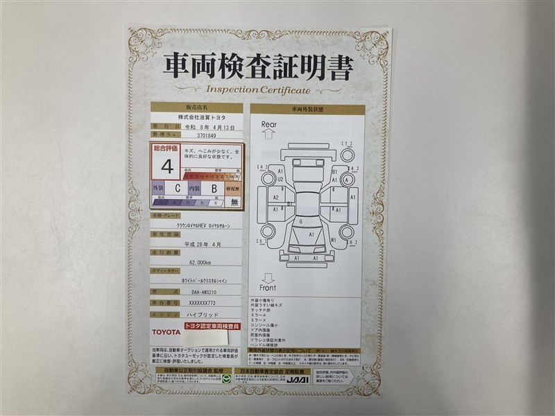 車両検査証明書付きです!だれでも中古車の状態がすぐにわかるよう、車のプロが客観的にチェック。車両の状態やわずかなキズも正確にお伝えします。