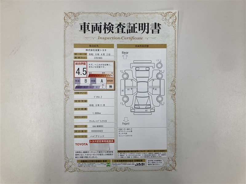 車両検査証明書付きです!だれでも中古車の状態がすぐにわかるよう、車のプロが客観的にチェック。車両の状態やわずかなキズも正確にお伝えします。