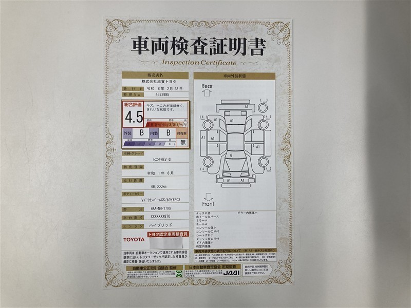 車両検査証明書付きです!だれでも中古車の状態がすぐにわかるよう、車のプロが客観的にチェック。車両の状態やわずかなキズも正確にお伝えします。