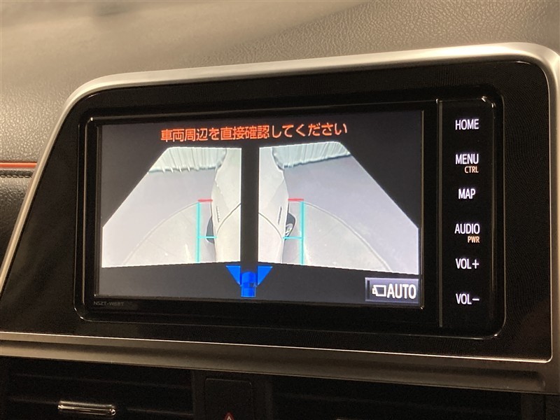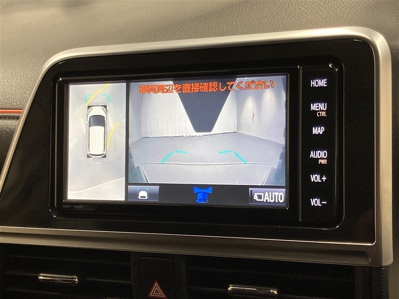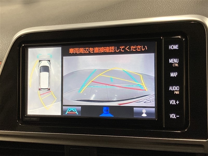 パノラミックビューモニターシステムが付いているので車の上から見た映像が確認できますよ。 一目で車両周辺の情報を確認できますが、直接安全をご確認下さい。