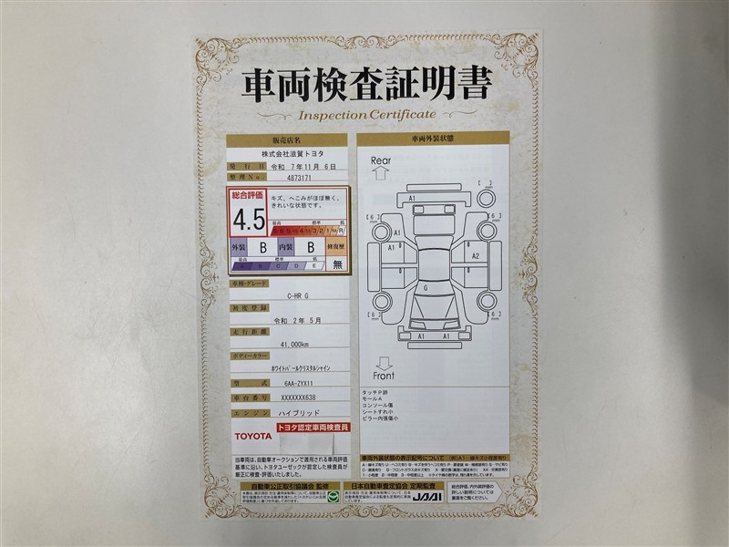 ※ 「修復歴あり」の場合、修復部位の詳細につきましては、販売店へお問い合わせください。
