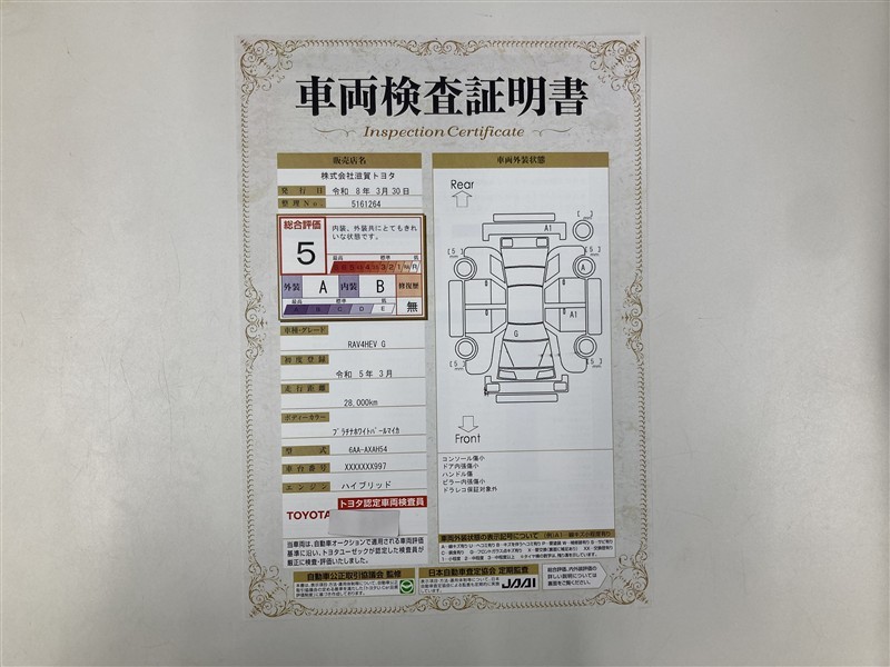 車両検査証明書付きです!だれでも中古車の状態がすぐにわかるよう、車のプロが客観的にチェック。車両の状態やわずかなキズも正確にお伝えします。