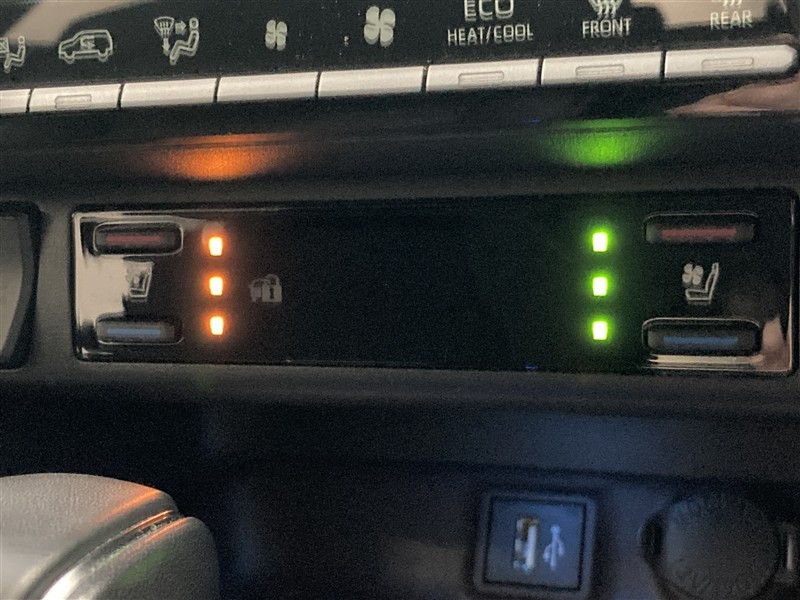 前席シートヒーター&ベンチレーション機能付き。ベンチレーションはシート表面の小さな穴から冷風が出るので暑い夏でも快適にお過ごしいただけます。