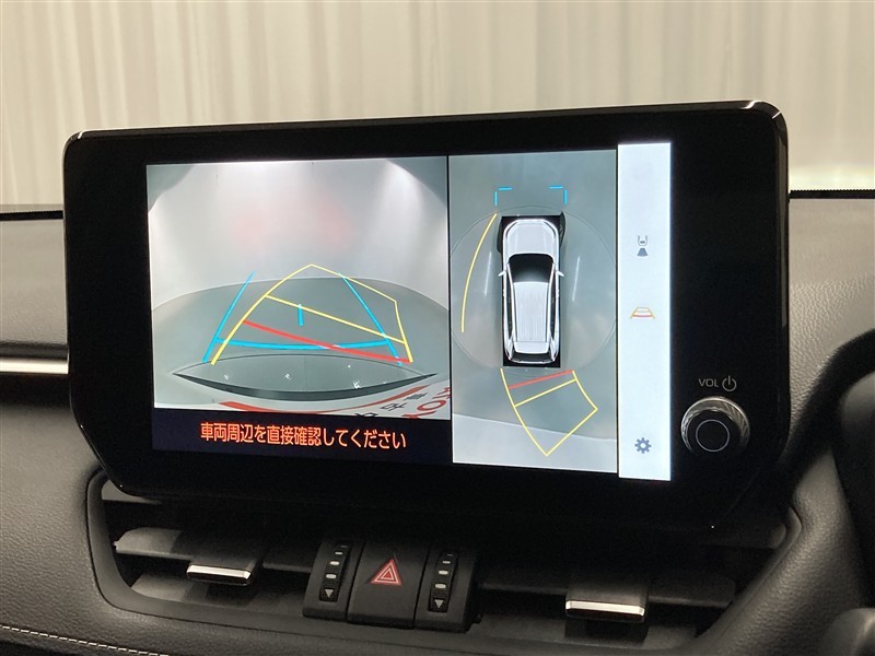 パノラミックビューモニターシステムが付いているので車の上から見た映像が確認できますよ。 一目で車両周辺の情報を確認できますが、直接安全をご確認下さい。