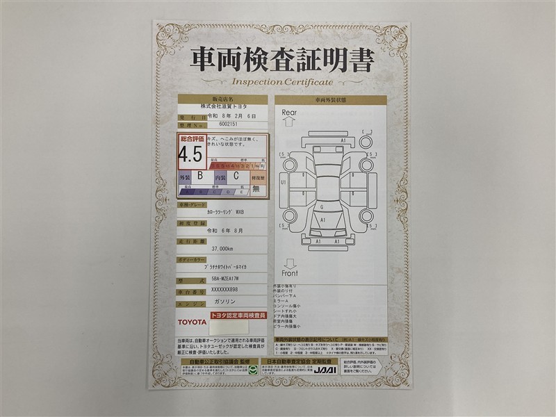 車両検査証明書付きです!だれでも中古車の状態がすぐにわかるよう、車のプロが客観的にチェック。車両の状態やわずかなキズも正確にお伝えします。