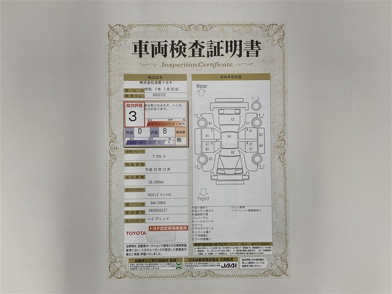 ※ 「修復歴あり」の場合、修復部位の詳細につきましては、販売店へお問い合わせください。