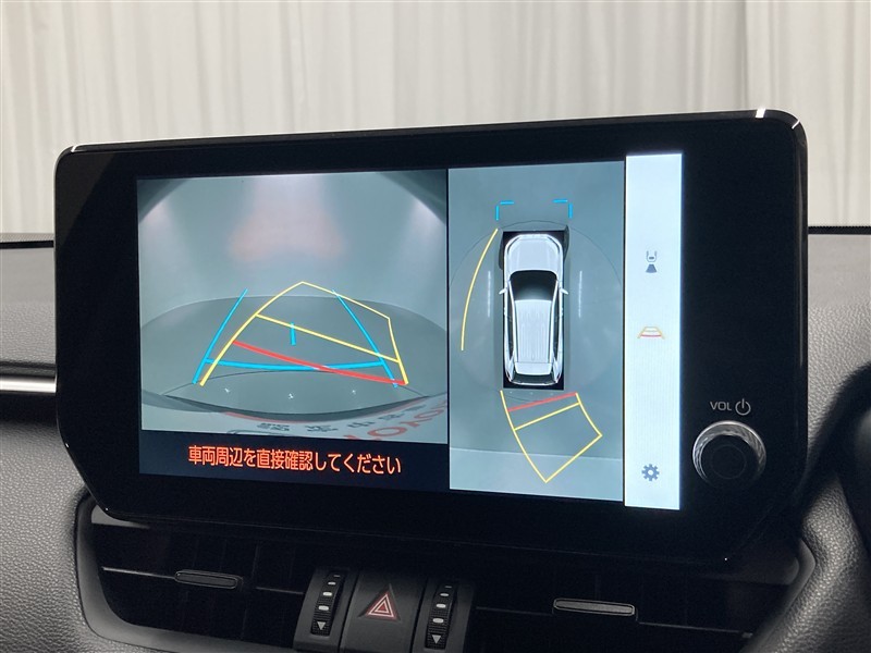 パノラミックビューモニターシステムが付いているので車の上から見た映像が確認できますよ。 一目で車両周辺の情報を確認できますが、直接安全をご確認下さい。