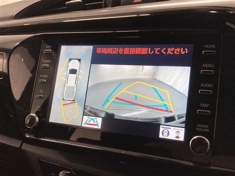 パノラミックビューモニターシステムが付いているので車の上から見た映像が確認できますよ。 一目で車両周辺の情報を確認できますが、直接安全をご確認下さい。