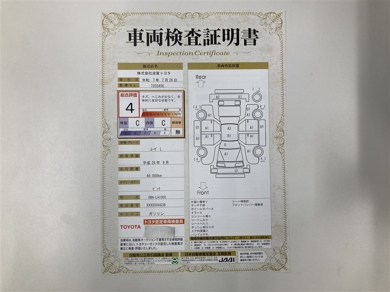 車両検査証明書付きです!だれでも中古車の状態がすぐにわかるよう、車のプロが客観的にチェック。車両の状態やわずかなキズも正確にお伝えします。