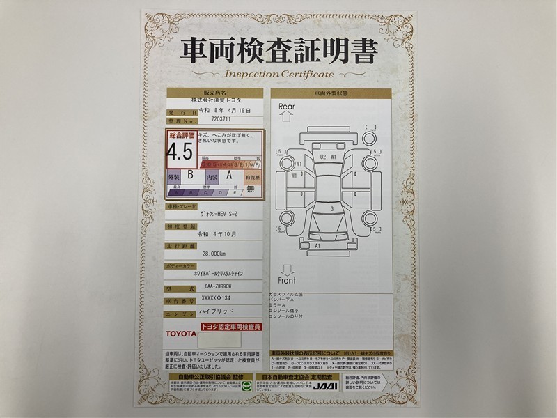 車両検査証明書付きです!だれでも中古車の状態がすぐにわかるよう、車のプロが客観的にチェック。車両の状態やわずかなキズも正確にお伝えします。
