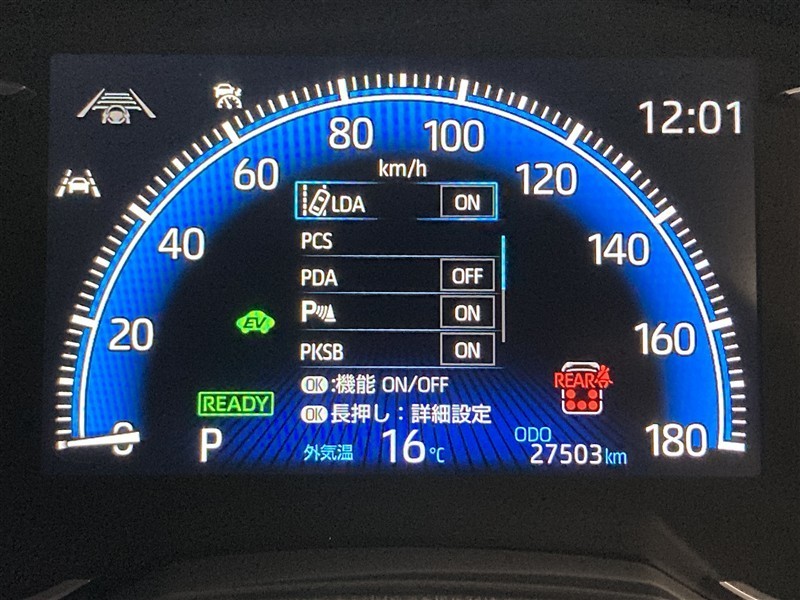 ハンドル操作に連動してガイドラインが変化するバックカメラ搭載。 クルマには構造上たくさんの死角があるのでとても便利な機能です。 あくまでも補助の為の装備なのでバックは目視が大事です