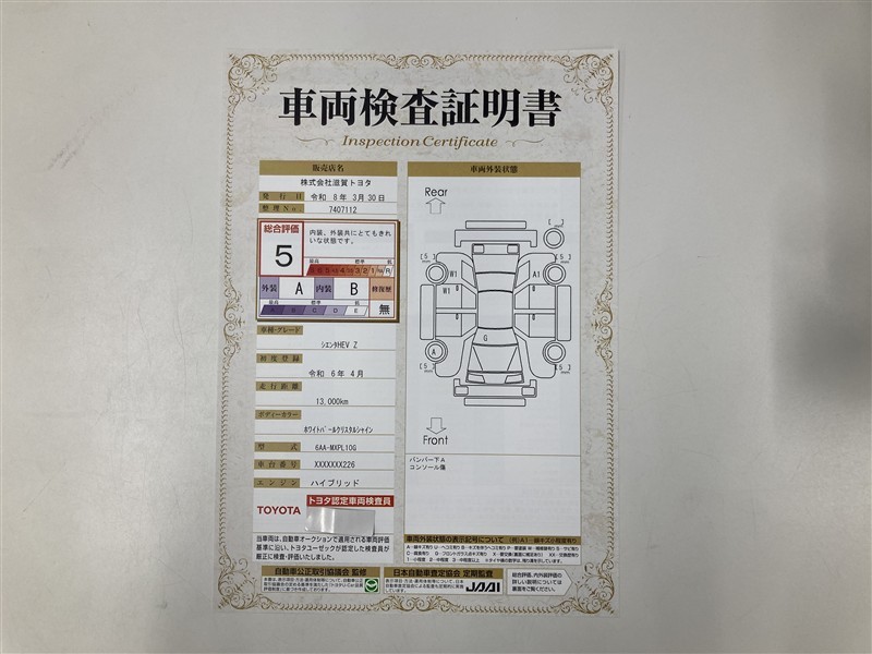 車両検査証明書付きです!だれでも中古車の状態がすぐにわかるよう、車のプロが客観的にチェック。車両の状態やわずかなキズも正確にお伝えします。