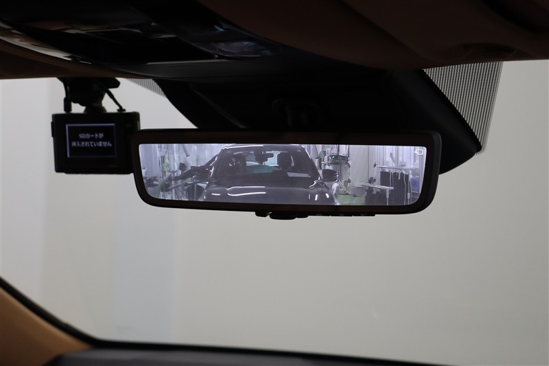 電子インナーミラーです。バックドア内側にカメラを取付けてインナーミラーに後方映像を表示。例えば、後席に大柄の方が座っていても後方確認が難なく出来ます。モニターモードとミラーモードは切替え可能です。