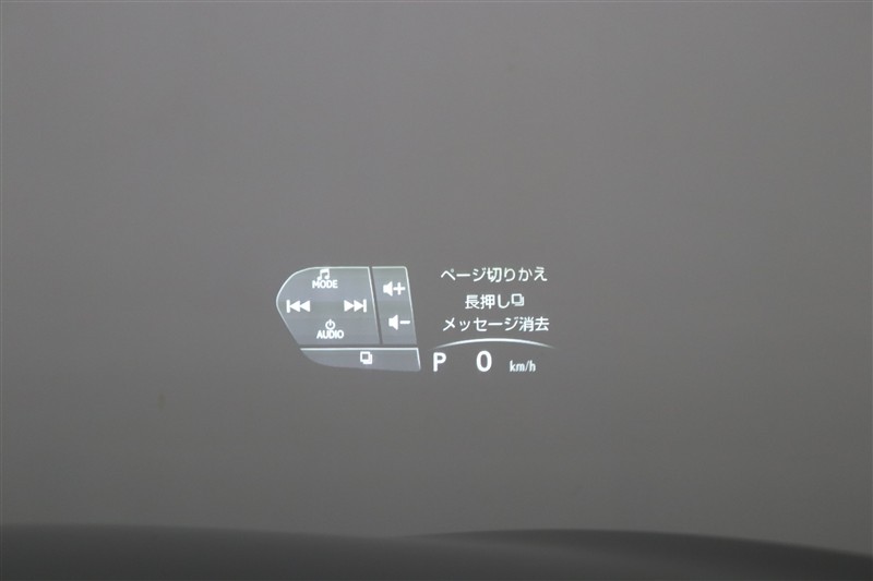 ヘッドアップディスプレイです。運転に必要な情報をフロントガラスの視野内に投影することで視線を外さず確認できます。モード変更が可能で、運転シーンに合わせて表示モードを選択することができます。