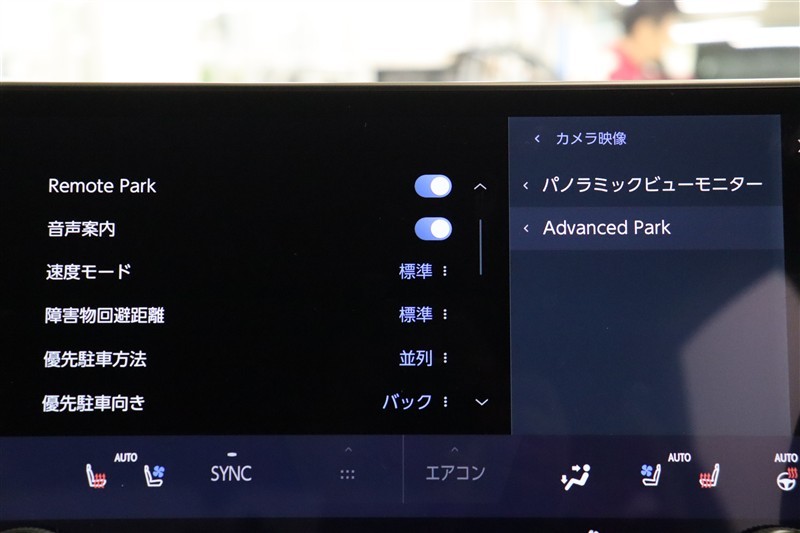 アドバンストパーク搭載。駐車したい場所の傍に停車して駐車位置を設定すれば、カメラとソナーで周囲を監視し、ステアリング・アクセル・ブレーキ操作が支援され駐車を完了してくれます。リモート機能付きです。