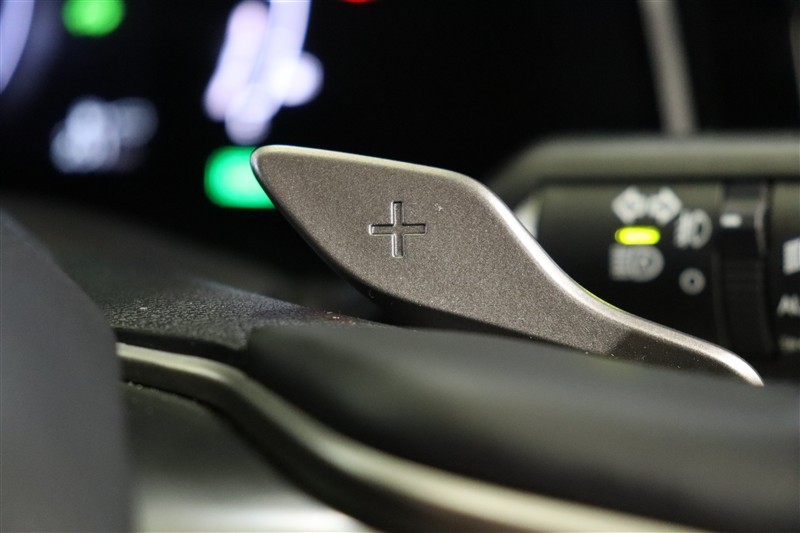 ステアリングから手を放すことなく瞬時にシフトチェンジできるパドルシフト付。長く続く下り坂などで便利ですよ。コーナーで減速した後瞬時に加速したい場合や急な上り坂で失速を防止するのにも役立ちます。