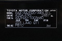 車両型式、フレームナンバーなどを表記したプレートです。最後までご覧いただきましてありがとうございました!ご不明な点などございましたら、お気軽にお問い合わせください。