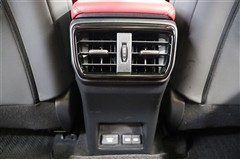 後部座席用にエアコン吹出口が装備されています。このエアコン吹出口が有ると、リヤエアコンがなくても後席の快適性はぐんとアップします。足元には100V・100W電源と給電用USBポートが装備されています。