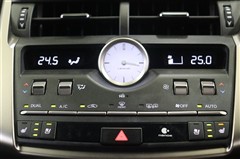 低い位置で水平軸をとることで開放感があります。立体的なインパネデザインやリモートタッチなど先進的な装備の中のアナログ時計にやはり目を惹かれます。センスの高さが感じられるクオリティーの高い運転席廻りです