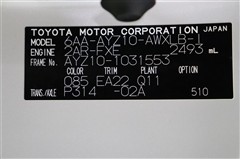 車両型式、フレームナンバーなどを表記したプレートです。最後までご覧いただきましてありがとうございました!ご不明な点などございましたら、お気軽にお問い合わせください。