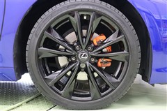 フロントグリルの漆黒とリンクした艶のある黒の19インチアルミホイールを装着。レクサスロゴが特別感ある専用オレンジキャリパーが見えるデザインになっています。