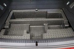ラゲージスペースには床下収納を備えています。トレイが仕切られているので、洗車用品など細々としたものを整理して収納できます。