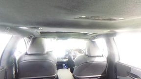 後部方向から降り注ぐ直射日光を遮るリヤガラスサンシェードを装備。落ち着いた空間を提供してくれます。上げ下げは電動で運転席からも後席のアームレストにあるリモコンからも操作出来ます。