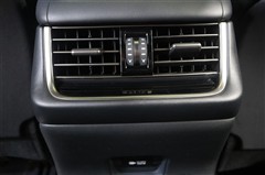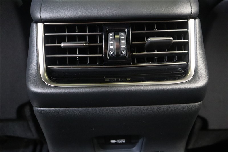 後部座席に向けたエアコン吹き出し口です。この吹き出し口が有ると、リヤエアコンがなくても後席の快適性はぐんとアップします。足元にはシェーバーなども充電できる100V・100W電源が装備されています。
