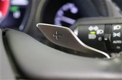 ステアリングから手を放すことなく瞬時にシフトチェンジできるパドルシフト付。長く続く下り坂などで便利ですよ。コーナーで減速した後瞬時に加速したい場合や急な上り坂で失速を防止するのにも役立ちます。