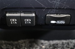 後部座席に向けたエアコン吹き出し口が装備されています。この吹き出し口が有ると、リヤエアコンがなくても後席の快適性はぐんとアップします。足元には給電用USBと100V/1500W電源が装備されています。
