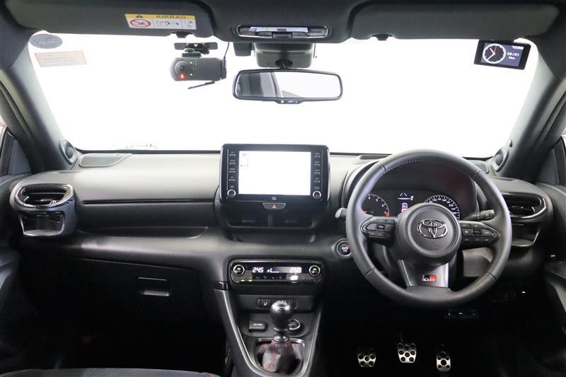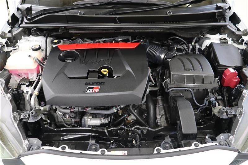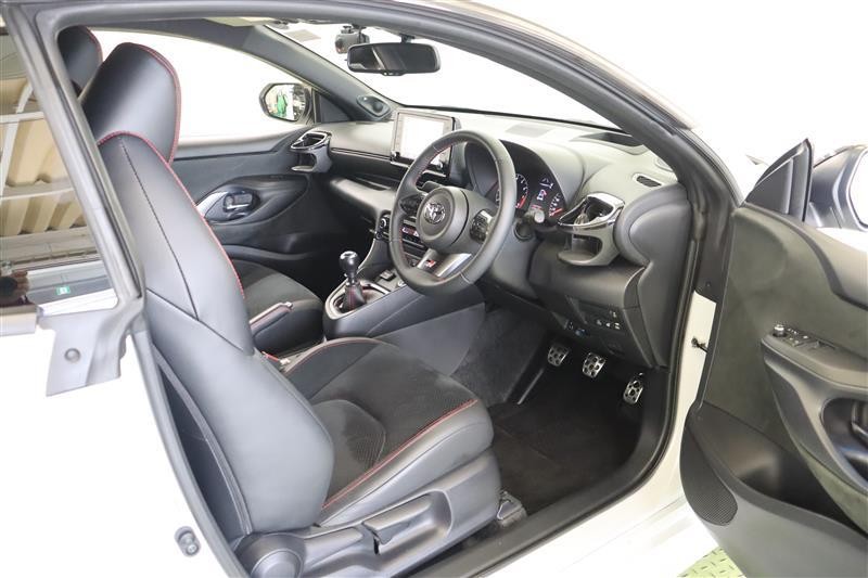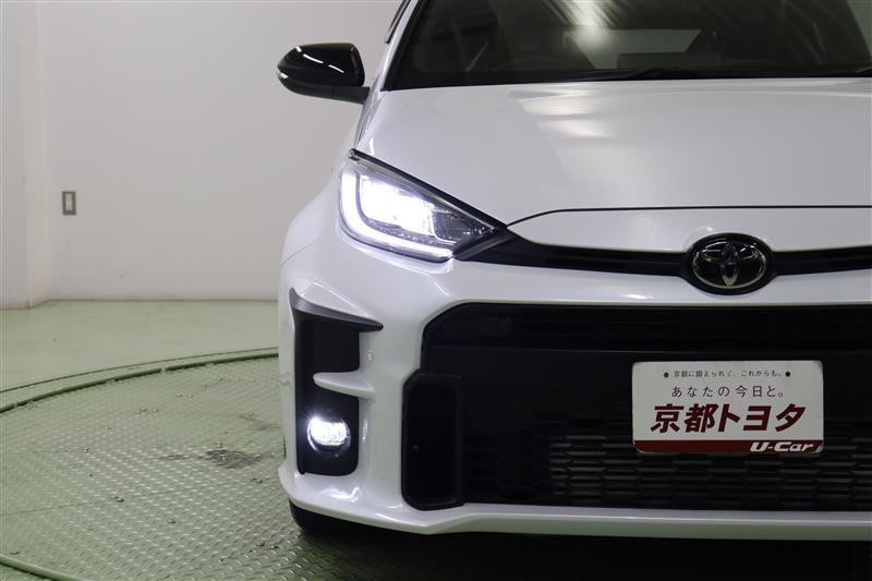小回りがきいて、走りも爽快な【ヤリス】4WD・6速M/T・ターボ搭載。走りに特化したGRバージョンです。大きく開いたフロントグリルのワイルドさに目を惹かれますね。この車は、車検整備付です。