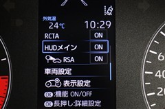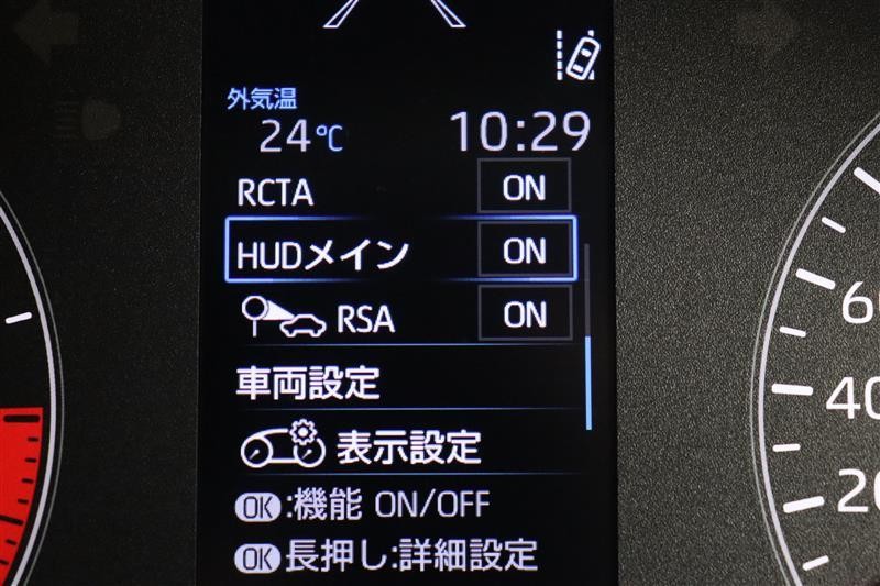 ヘッドアップディスプレイ(HUD)搭載です。運転に必要な情報をフロントガラスの視野内に投影することで視線を外さず確認できます。視線移動や焦点調節が少なくて済むので安全性の向上に貢献します。