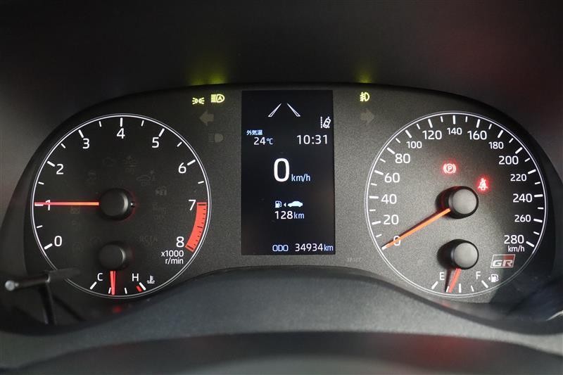 黒地に白文字がシンプルで視認性の良いGR専用メーターです。中央のTFT液晶画面も視認性が良く、スポーツ走行に必要な情報が読み取りやすくなっています。