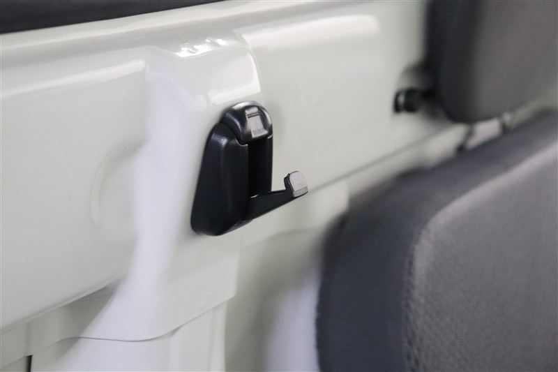 運転席と助手席の間に便利なフックが付いています。お買い物袋をかけるのも良し、ゴミ袋をかけるのも良し、ティッシュケースをかけるのも良し。いろいろ使えてあると便利なアイテムですね。