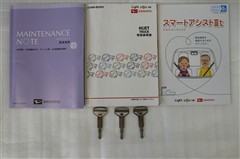 メンテナンスノート、取扱説明書です。メンテナンスノートにはその車の整備記録が事細やかに記録されています。車の履歴が判るとても重要な物です。車検証と一緒に大切に保管してくださいね!