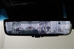 前後方録画機能付デジタルインナーミラーです。車両後方カメラの映像をインナーミラー内のディスプレイに表示。切替レバーを操作することで、鏡面ミラーモードからデジタルミラーモードに切替えることができます。