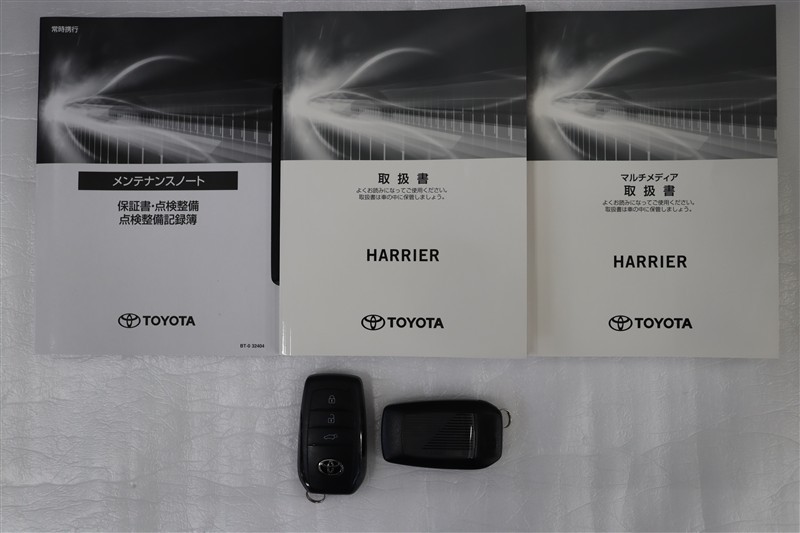 メンテナンスノート、取扱説明書です。メンテナンスノートにはその車の整備記録が事細やかに記録されています。車の履歴が判るとても重要な物です。車検証と一緒に大切に保管してくださいね!