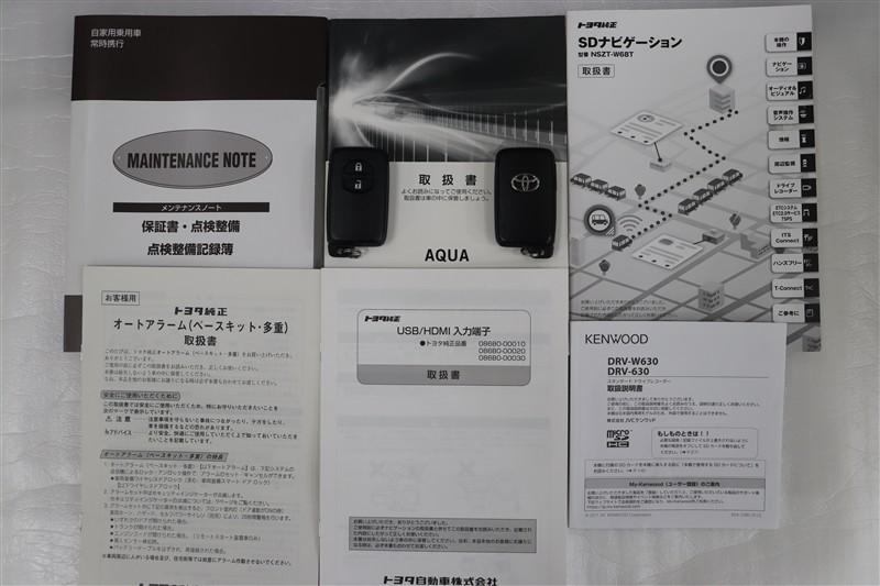 メンテナンスノート、取扱説明書です。メンテナンスノートにはその車の整備記録が事細やかに記録されています。車の履歴が判るとても重要な物です。車検証と一緒に大切に保管してくださいね!