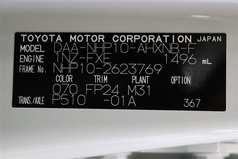 車両型式、フレームナンバーなどを表記したプレートです。最後までご覧いただきましてありがとうございました!ご不明な点などございましたら、お気軽にお問い合わせください。