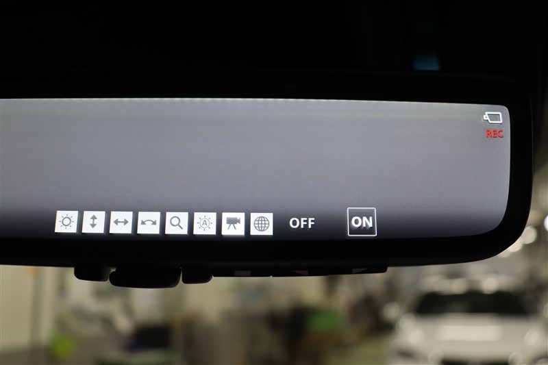 前後方録画機能付デジタルインナーミラーです。車両後方カメラの映像をインナーミラー内のディスプレイに表示。切替レバーを操作することで、鏡面ミラーモードからデジタルミラーモードに切替えることができます。