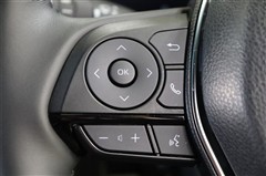 ステアリングスイッチでハンズフリー電話や音声認識、オーディオ操作やマルチインフォメーションディスプレイ内の表示切替えなどが出来ます。走行中に視線を逸らさず出来る手元操作は安全運転につながります。