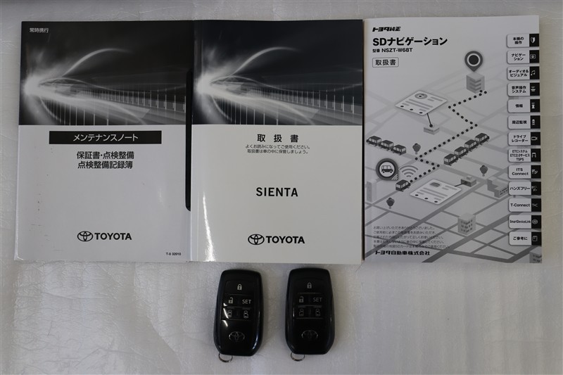 メンテナンスノート、取扱説明書です。メンテナンスノートにはその車の整備記録が事細やかに記録されています。車の履歴が判るとても重要な物です。車検証と一緒に大切に保管してくださいね!