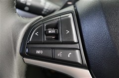 走行中に視線を逸らさず手元でオーディオ操作やマルチインフォメーションディスプレイ内の表示切替えなどが出来るスイッチ付き。ハンズフリー電話スイッチは作動しません。ご了承ください。