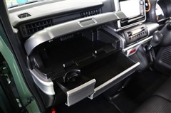大きく上に開くインパネアッパーボックスはしまいやすく取り出しやすい便利な収納です。下には手前にドリンクホルダー、奥がインパネボックスになっています。引き出すタイプで使わない時はスッキリ格納できます。