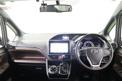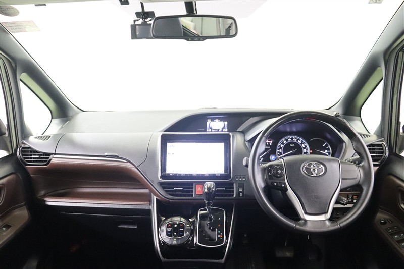 黒×ブラウンのお洒落な雰囲気のステアリング廻りです。デザイン性だけでなく使い勝手は良く、助手席側までボンネットフードを見渡せるので、狭い道でも車幅の感覚がつかみやすく運転しやすいですよ。