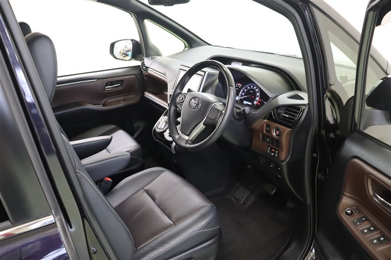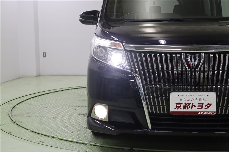縦基調のフロントグリルが特徴の【エスクァイア】猛々しい外観でありながらステップが低く、子供からお年寄りまで乗り降りしやすい設計の優しさが魅力です。