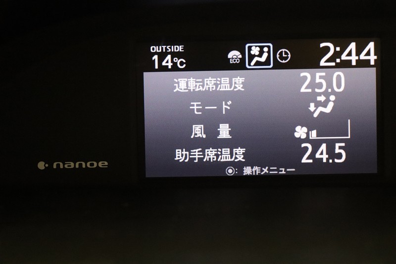 デザイン性の高いパネルのエアコンは左右個別の設定が出来ます。場所や個人の体感による温度差も解消できて快適です。ナノイー搭載車ですので、肌や髪に優しいナノイーが室内を爽やかな空気環境にしてくれます。