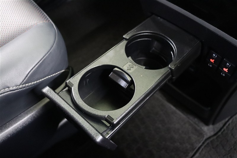 格納式のドリンクホルダーが装備されています。ドリンクホルダーとしてはもちろん、ホルダー部分をスライドすれば長財布やスマホ、iPhoneを収納するのにも便利です。使わない時は格納出来るのでスマートです。