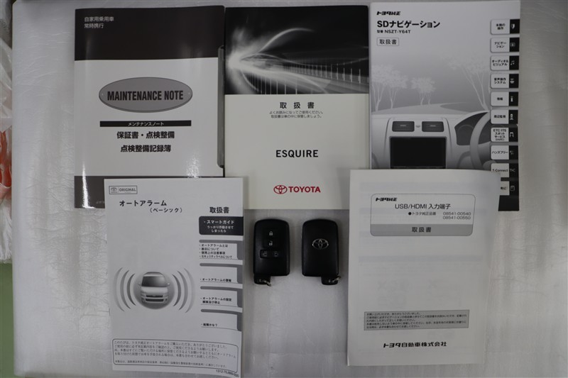 メンテナンスノート、取扱説明書です。メンテナンスノートにはその車の整備記録が事細やかに記録されています。車の履歴が判るとても重要な物です。車検証と一緒に大切に保管してくださいね!